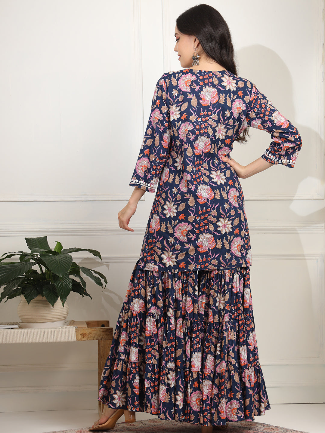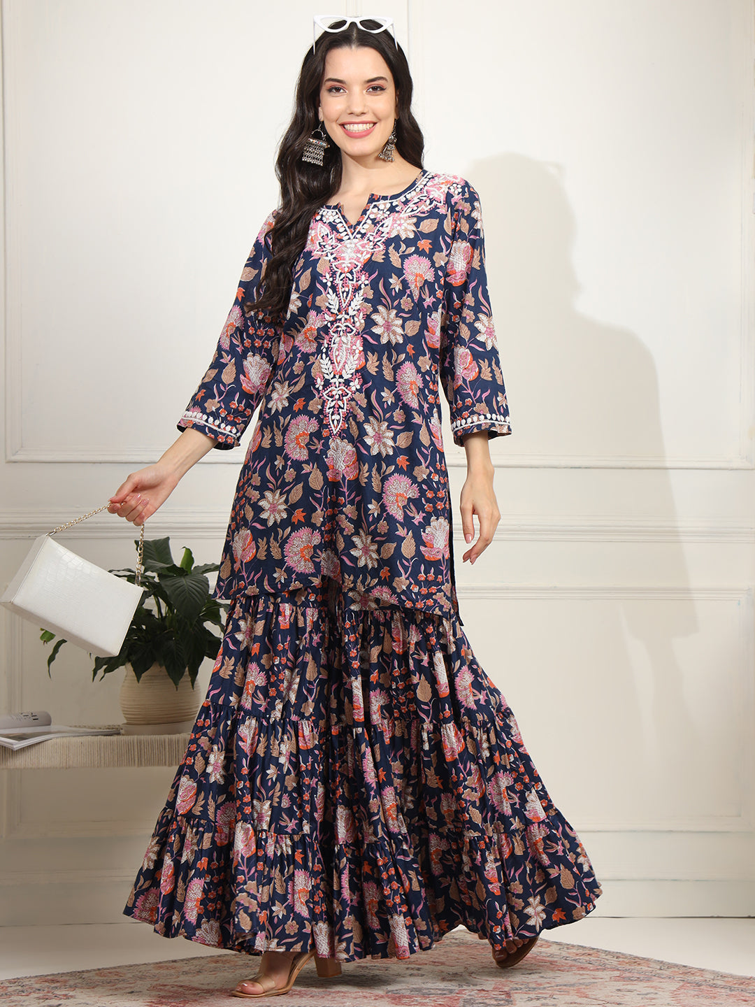 | "SUFIZA"Block Print with Chikankari Kurta and Sharara |