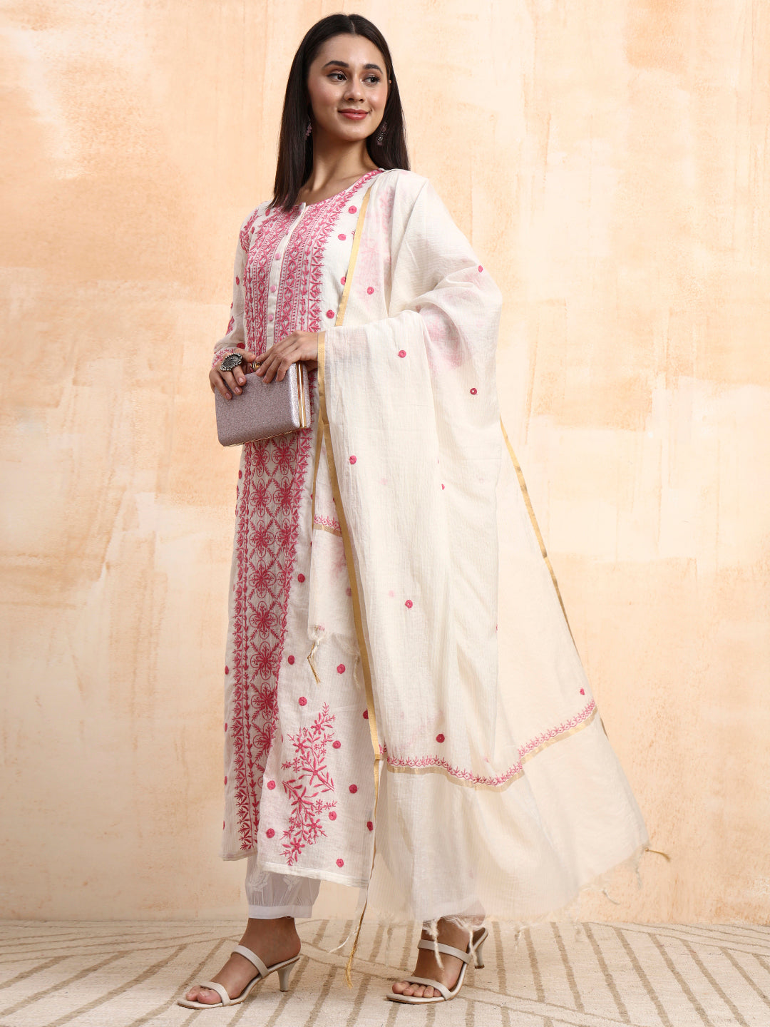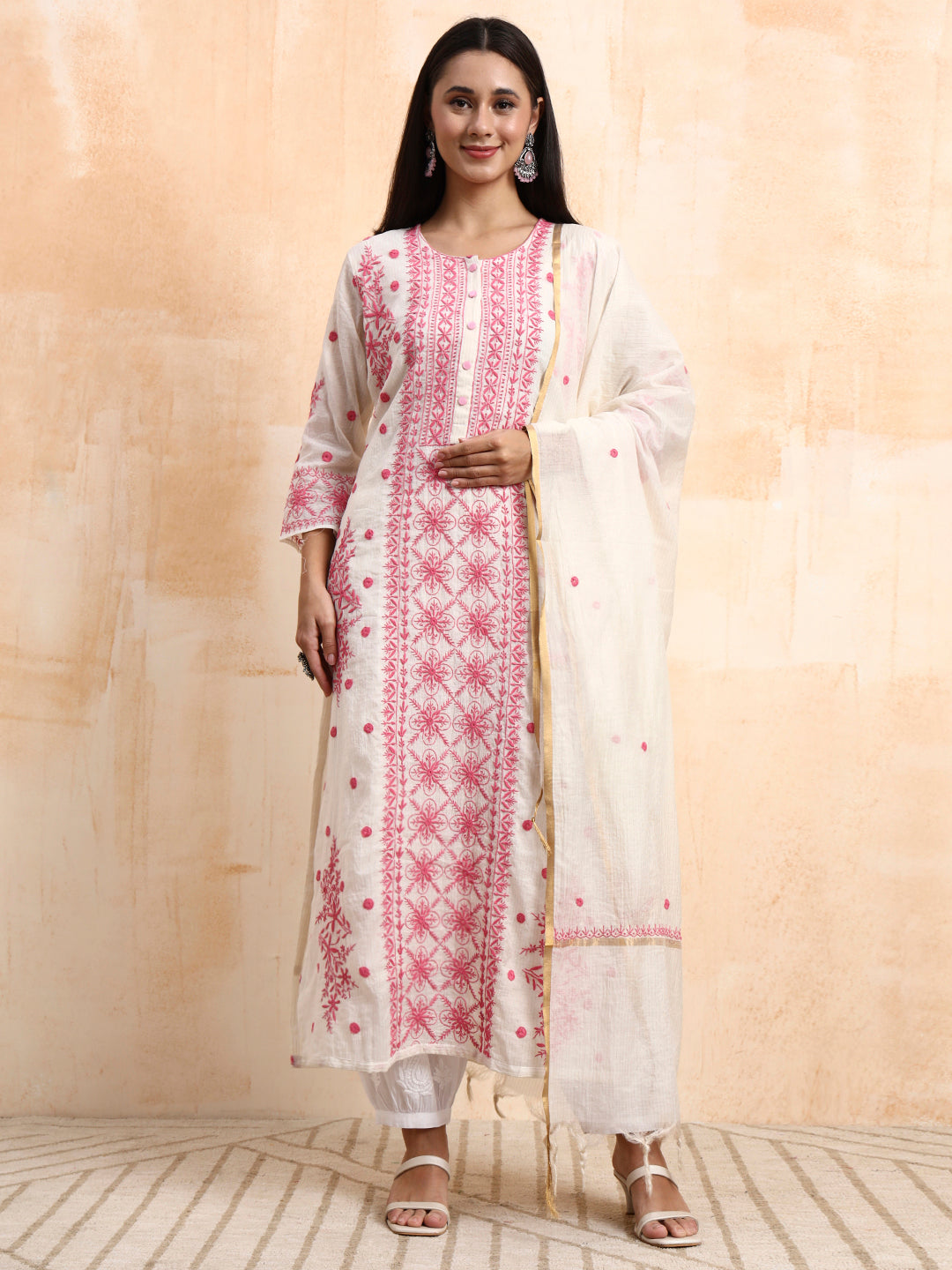 | "SUFIZA"Chikankar Orgenza Kurta Set |