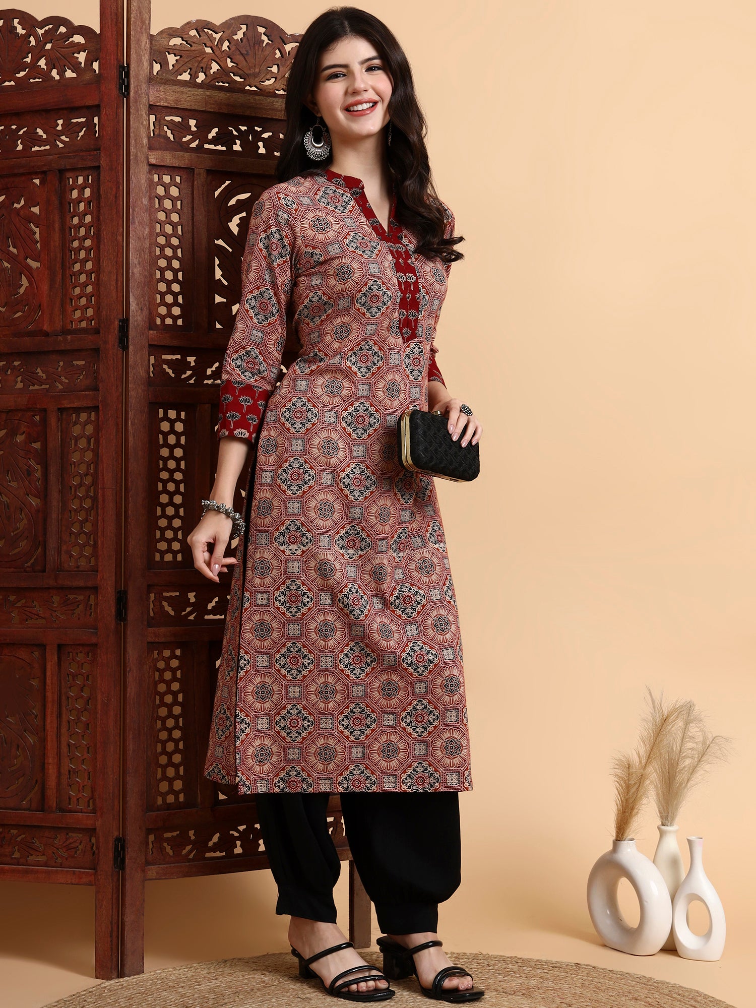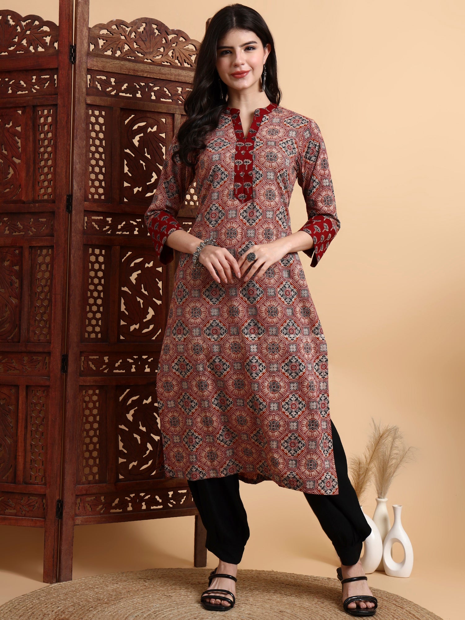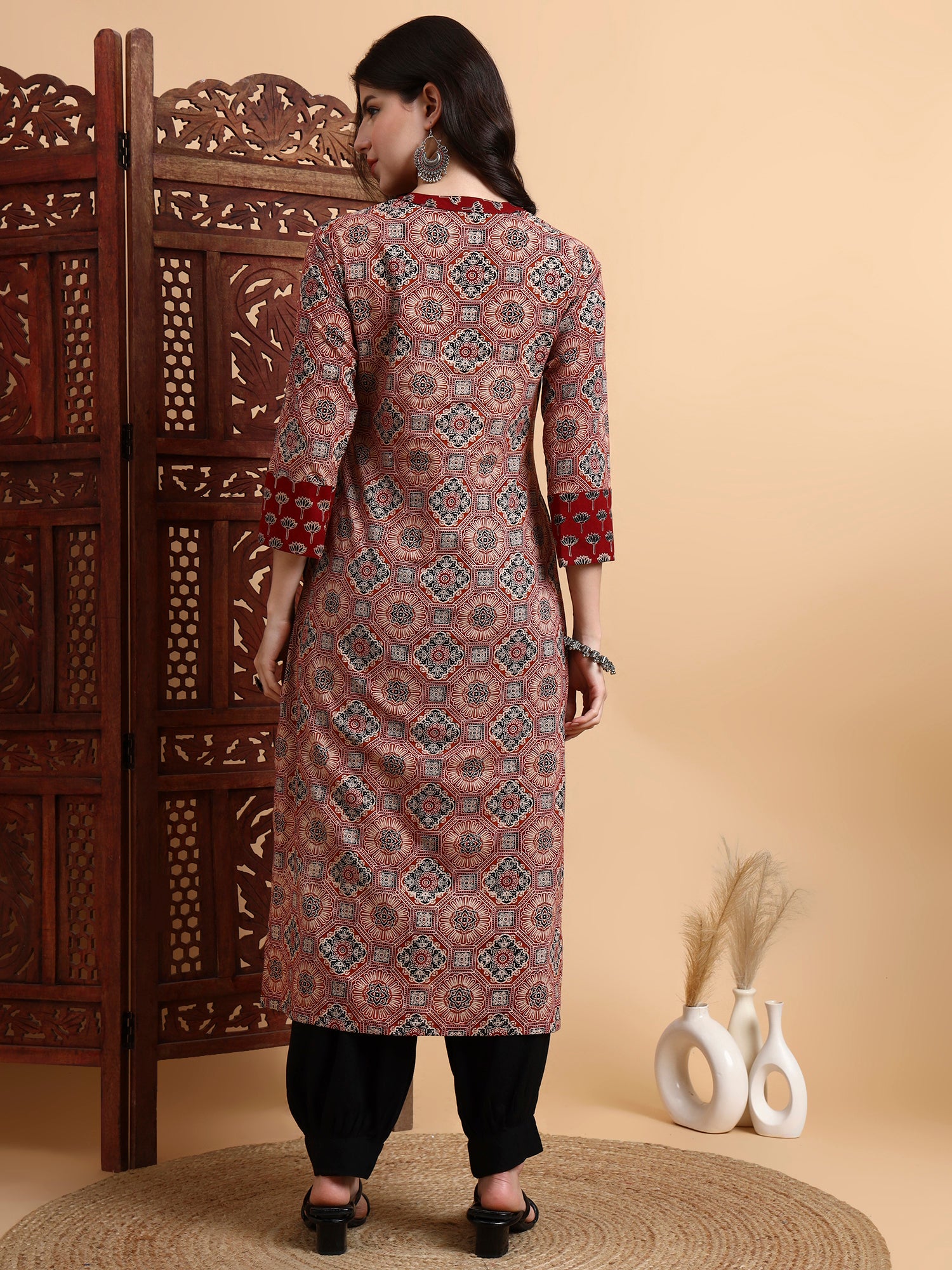 "Sufiza" Hand Block Ajrak Print Kurta |