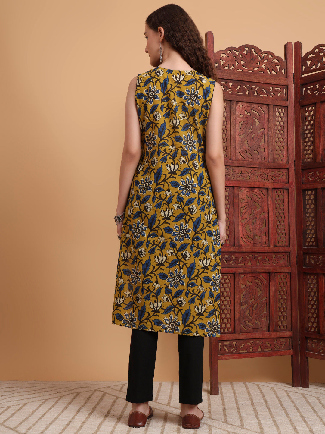 The "SUFIZA" Hand Block Print Mustard Color with beautiful flower motif Kurta is perfect Office Wear. The Kurta is 46 inches long A-line Style. Perfect Kurta to look different in the crowd.