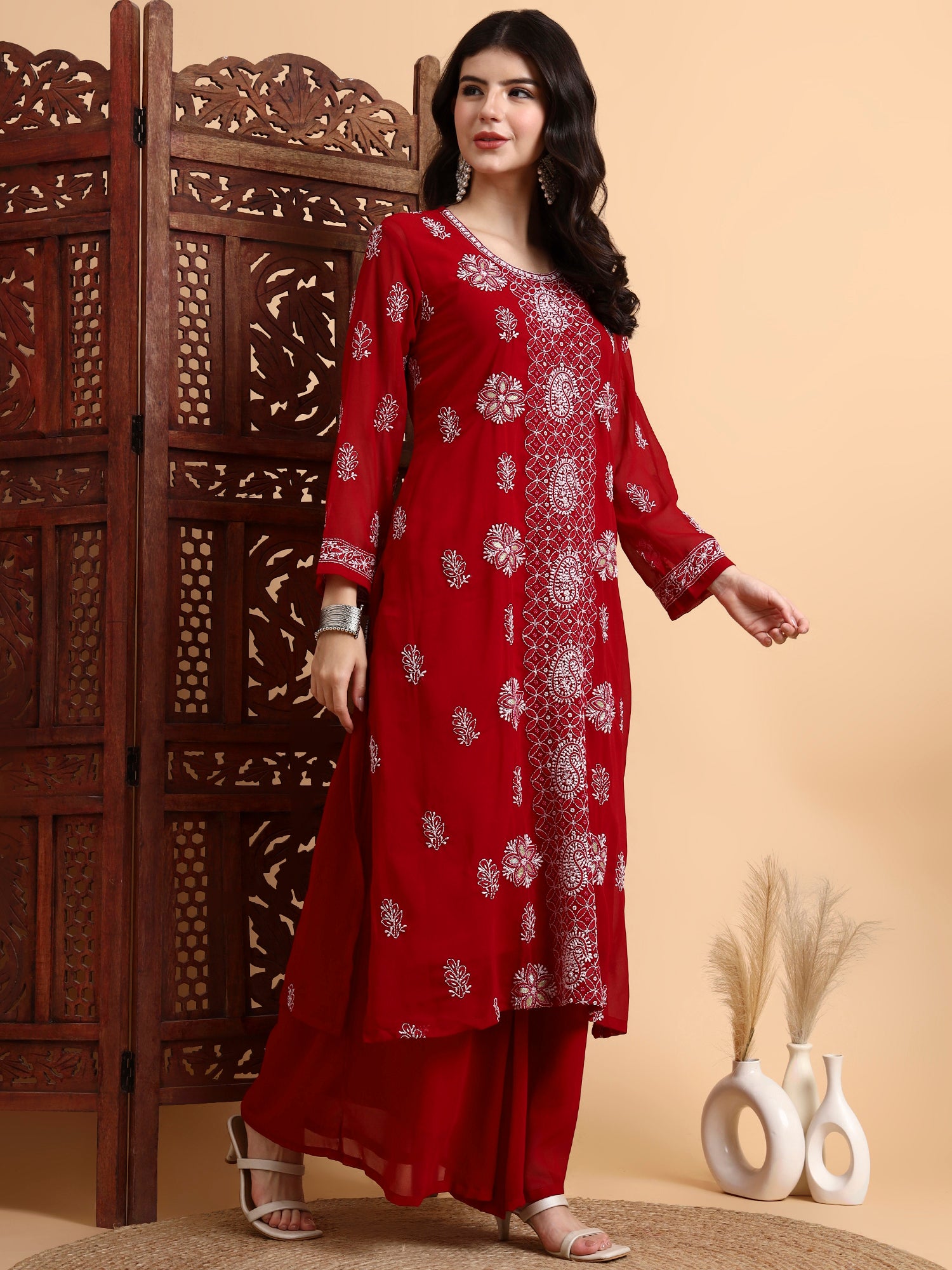| "SUFIZA"Chikankar GeorgetteKurta Set |