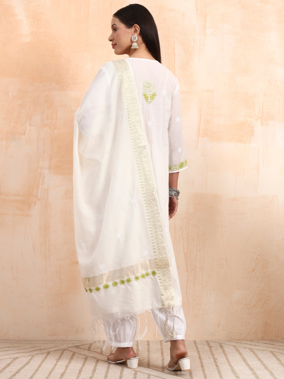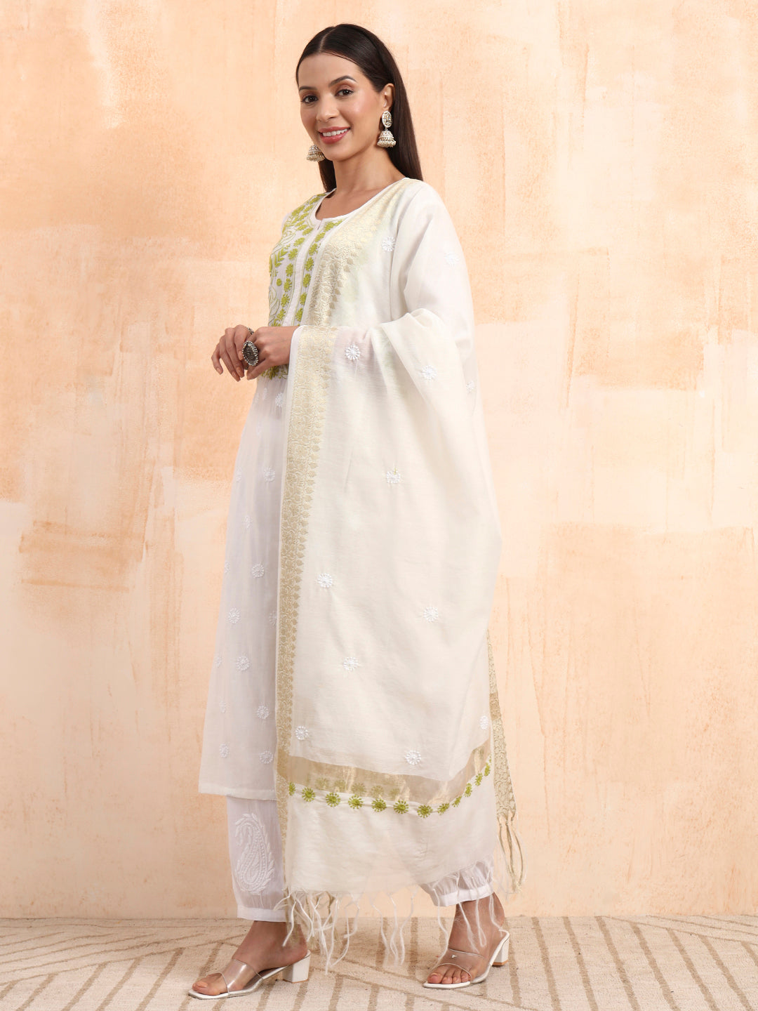 | "SUFIZA"Chikankar Mul Chanderi Kurta Set |