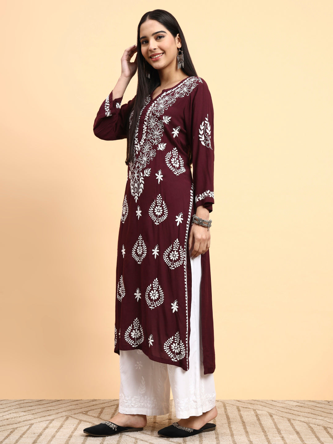 | "SUFIZA"Chikankar modal Cotton Kurta |