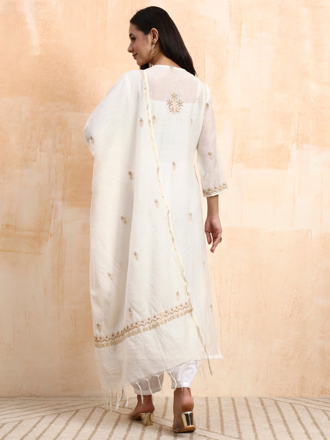 | "SUFIZA"Chikankar Mul Chanderi Kurta Set |
