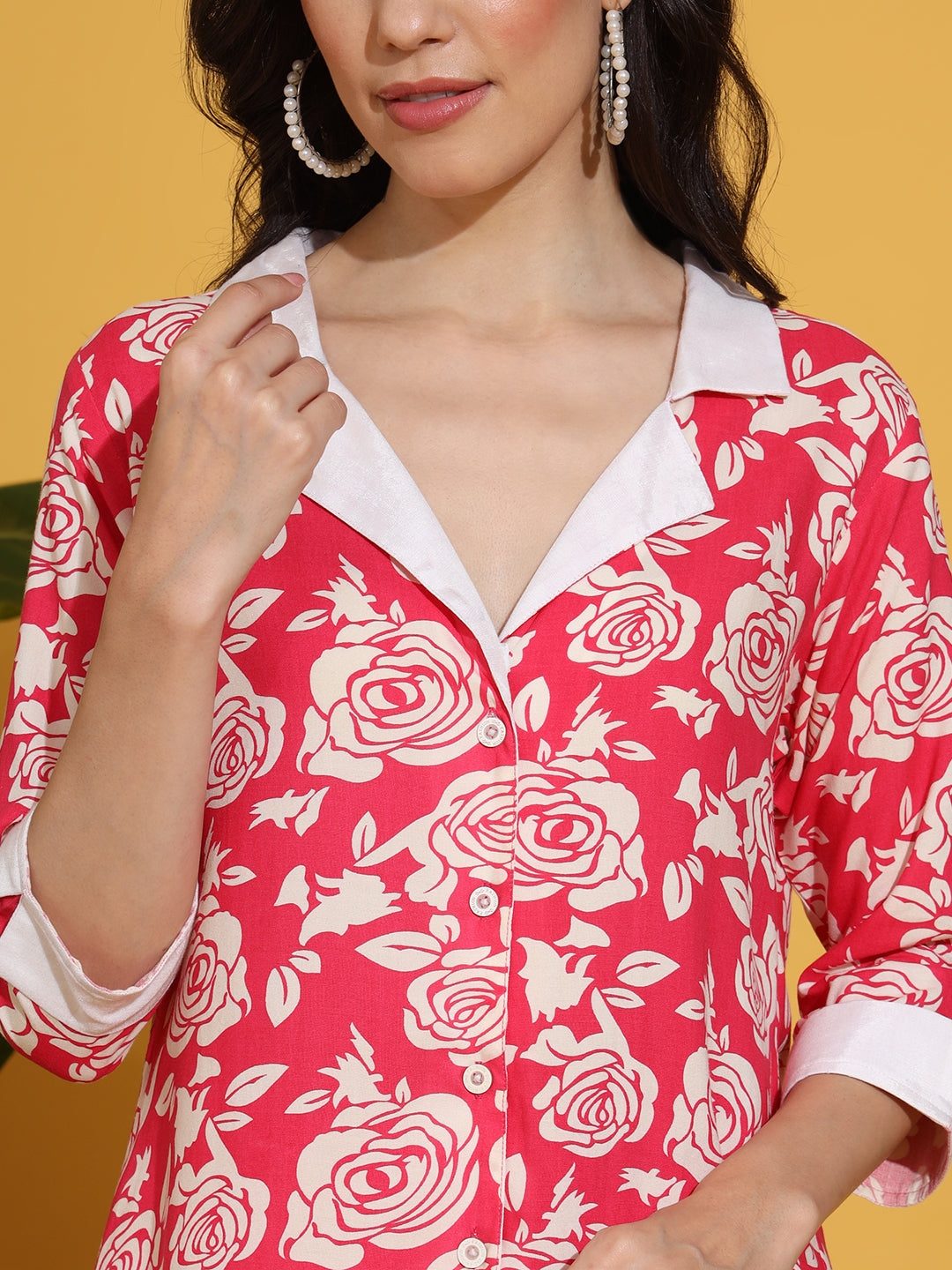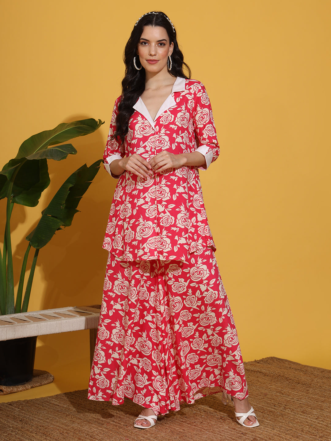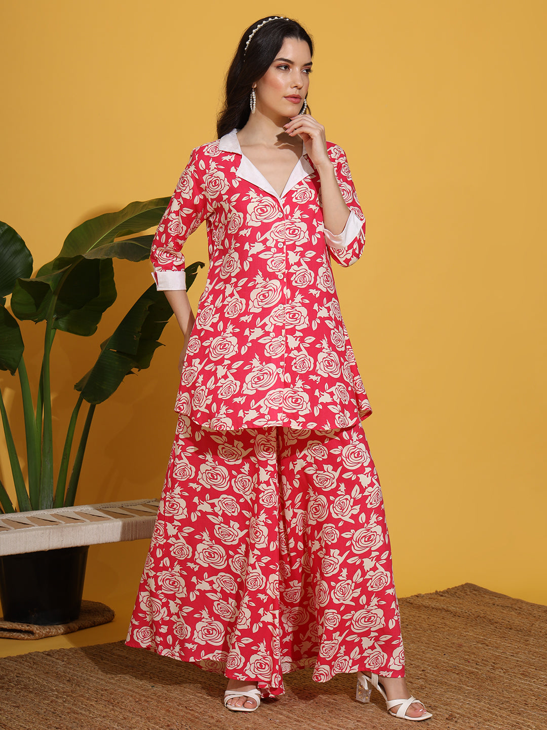 | "SUFIZA" Pink and Cream flower Printed Co-Ord Set |