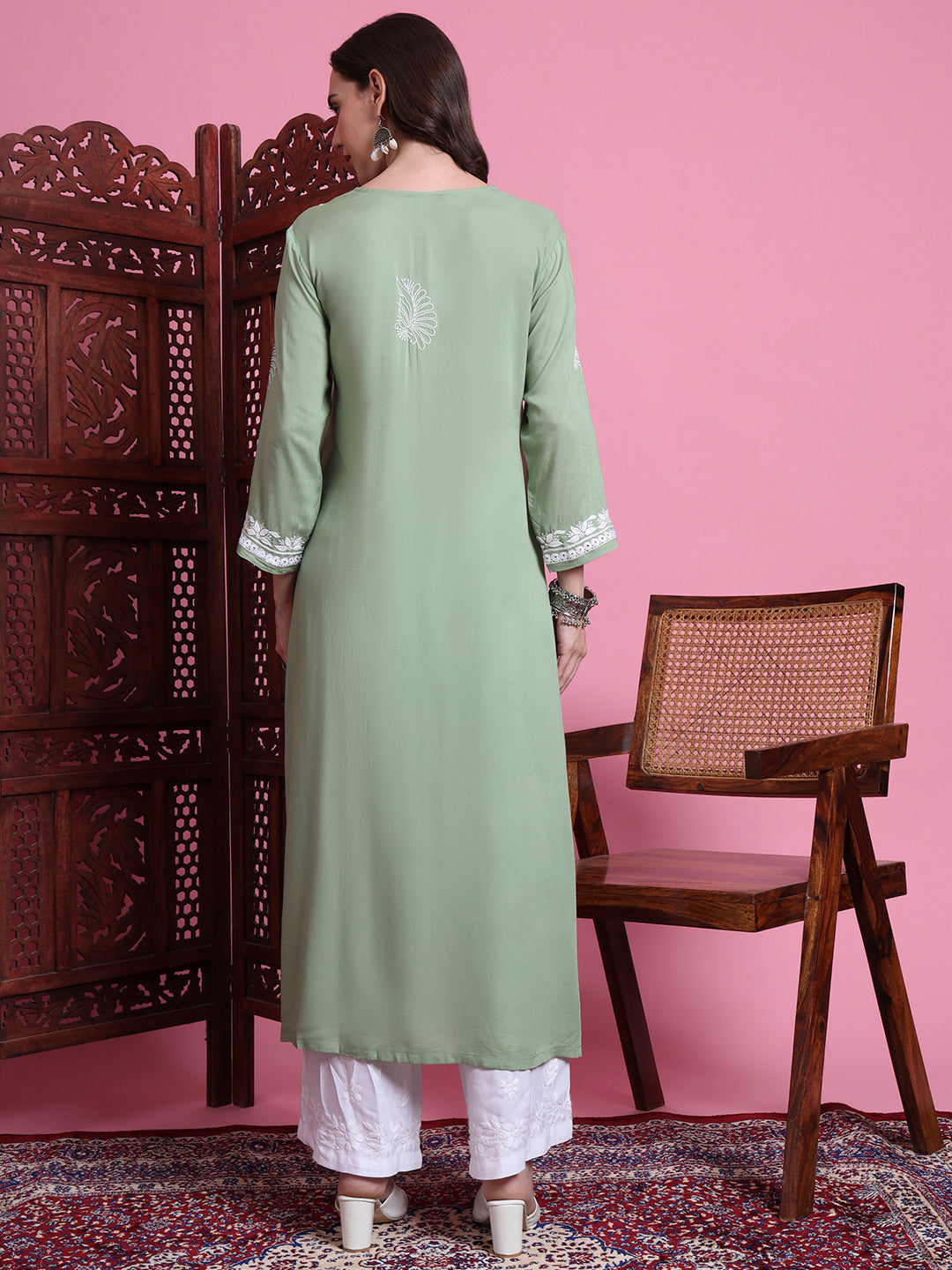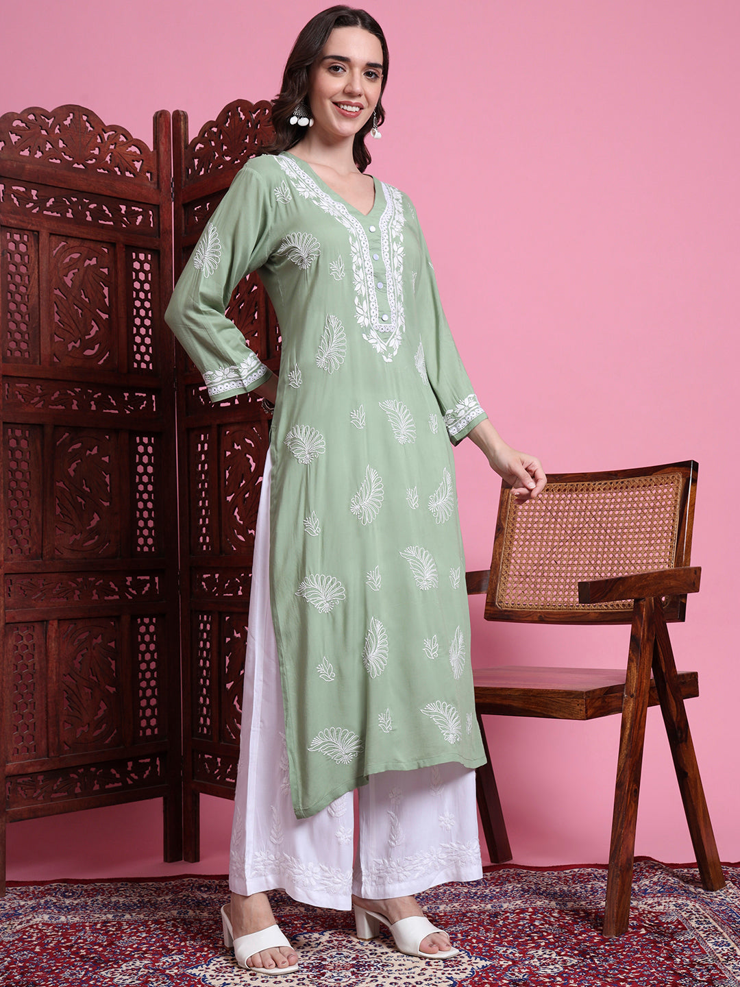 The "SUFIZA" Chikankari Hand Embroided Pista Green Color Kurta perfect Office and Casual Wear. The Kurta is 45 inches long Straight Style. Perfect Kurta to look different in the crowd.