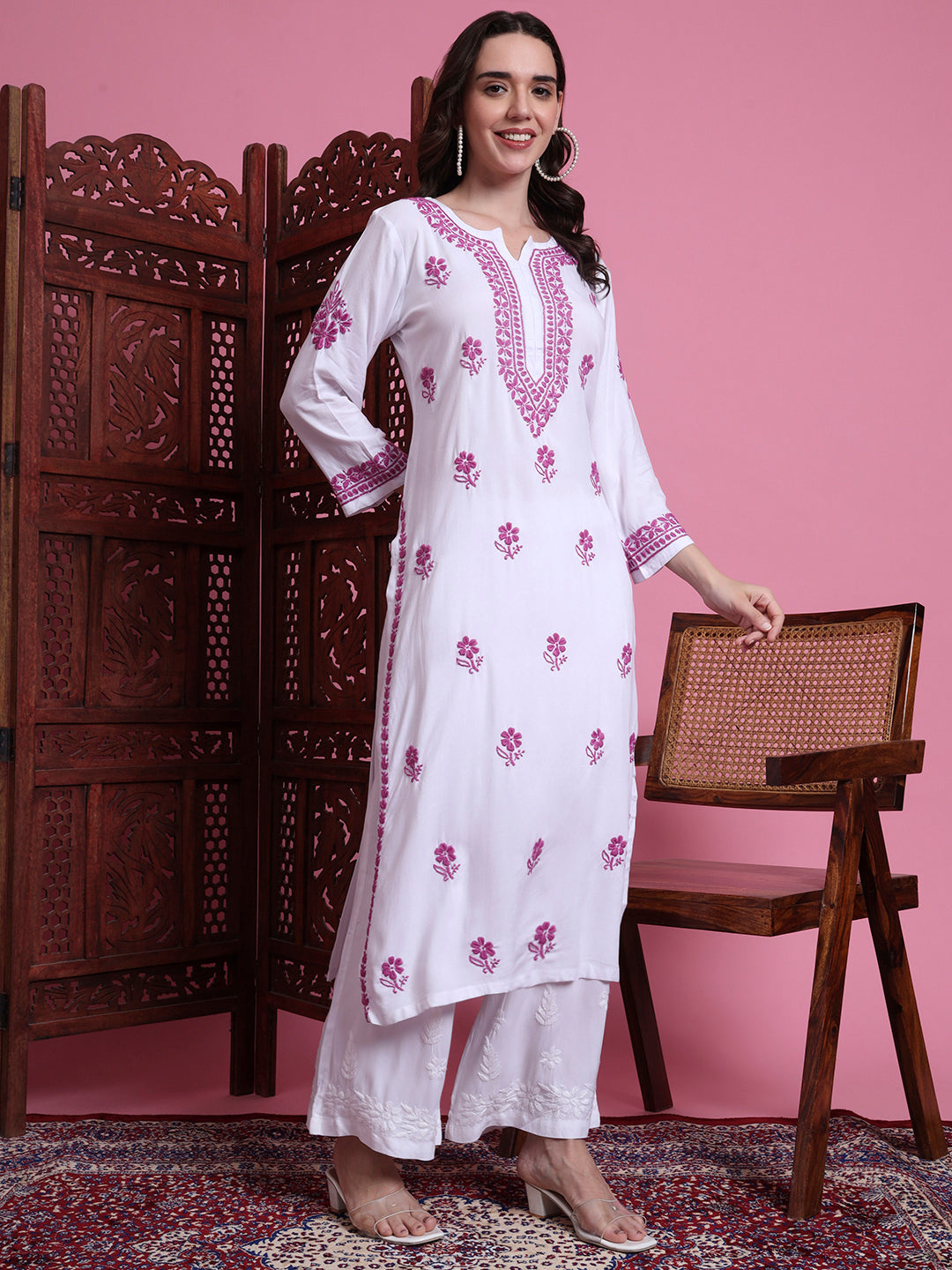 The "SUFIZA" Chikankari Hand Embroided White Color Kurta perfect Office and Casual Wear. The Kurta is 45 inches long Straight Style. Perfect Kurta to look different in the crowd.