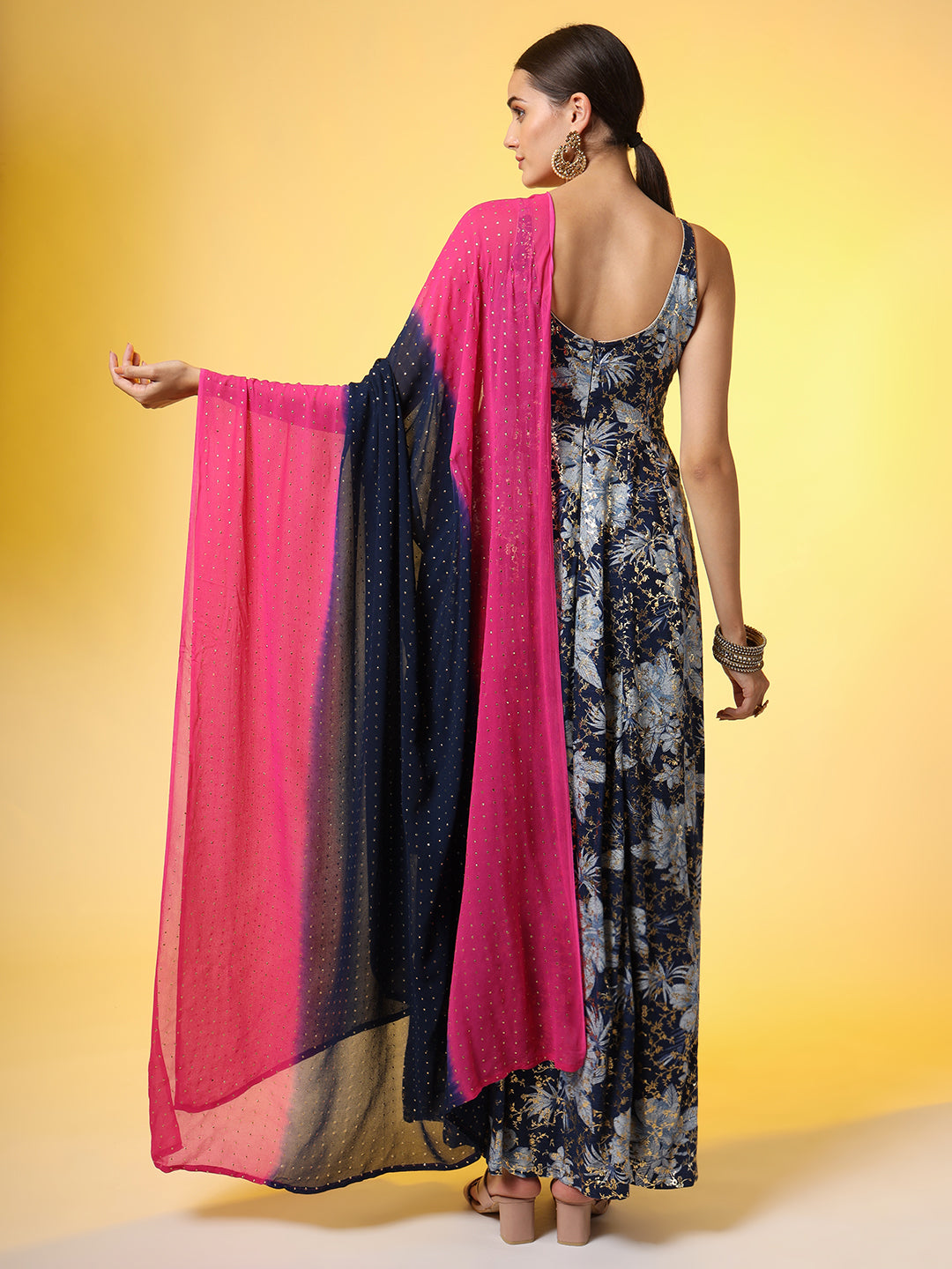 | "SUFIZA" Viscose Rayon Foil Printed Dress With Dupatta |